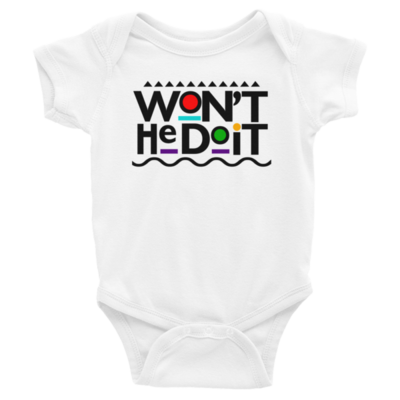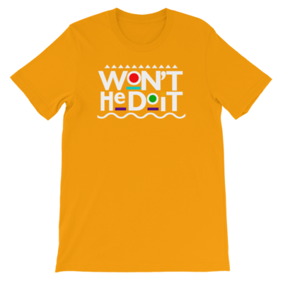 Statement tee with popular catchphrase, "Won't He Do It! MARTIN Show inspired font!
